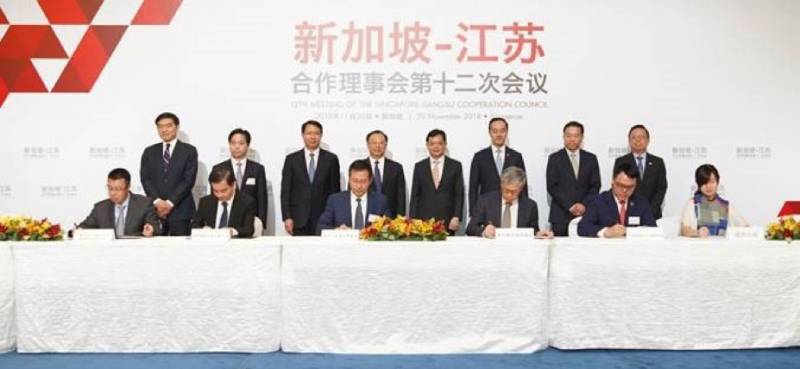 新加坡-江苏合作理事会于11月20日在新加坡召开第十二次会议。会议由理事会新苏双方主席,新加坡财政部长王瑞杰、江苏省省长吴政隆共同主持。新苏双方副主席,新加坡国家贸易及工业部高级政务部长许宝琨、江苏省副省长郭元强,也出席了会议。