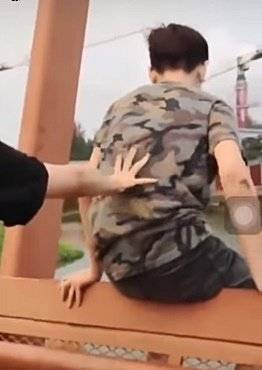 一名友人还帮忙推了少年一把。(视频截图)