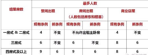 政策调整之前,四房式以上的组屋能够租给9个人,现在只能租给6个人,三房式组屋维持不变,可以租给6个人,1或2房式组屋可以租给4个人。