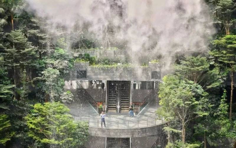 在中庭的雨漩涡瀑布上