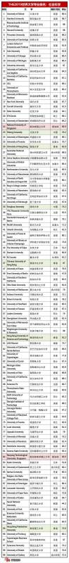 中国上榜的大学增长了两倍多,从去年的9所上升到33所。北京大学从去年的22位下滑一位,排第23;清华大学则从去年的第54位跃居第37。