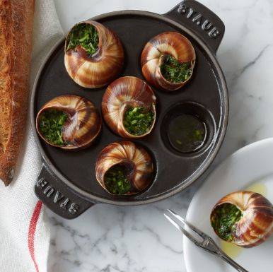 (Escargots(法国蜗牛)是可食用的蜗牛,通常被作为法餐的头盘菜。蜗牛哭晕在自己壳里......)