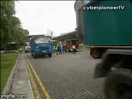 在过去的一场演习中,被动员的民用卡车驶入演习地点