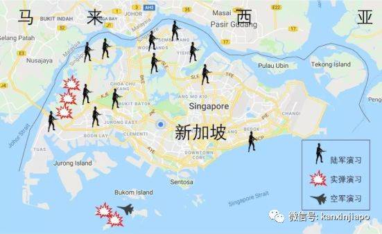 除了这次的动员演习之外,今天国防部还宣布,即将在实里达(Seletar)、马西岭(Marsiling)、惹兰巴哈(Jalan Bahar)、梁宙(Neo Tiew)、林厝港(Lim Chu Kang)、惹兰国民(Jalan Kwok Min)、大士(Tuas)、裕廊上段(Upper Jurong)、丰加(Hong Kah)、亚马宫(Ama Keng)、勿洛码头(Bedok Jetty)、克兰芝(Kranji)、伦多(Lentor)、新邦(Sinpang)、三巴旺(Sembawang)和万礼(Mandai)等多个地点举行军事演习,包括实弹演习。