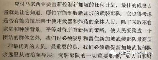 李光耀在他的回忆录中提到:应付马来西亚要重新控制新加坡的任何计划,最佳的威慑力量就是让它知道,哪怕它能制服新加坡的武装部队,它也得考虑是否有能力镇压善于使用武器和炸药的全体人民。