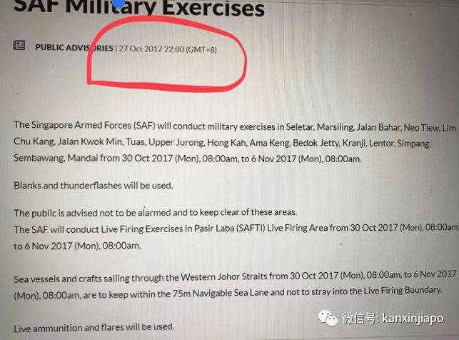 当局提醒民众避开演习区域,进入武装部队限制区域属于违法,会被处以高达1000新币的罚款或2年监禁,严重者会又罚款又坐牢。演习期间在柔佛海峡西部航行的船只,也需要保持在75米通航海道之内,不要进入实弹射击的界限。
