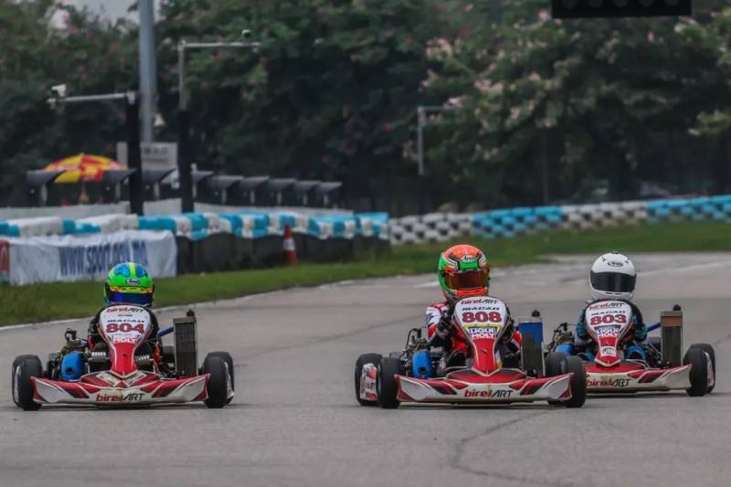 在这个融合了来自世界各地车手的比赛日,CKC的MINI组别决赛首先掀起了一番关于赛车的逆转故事。虽说今天的温度比昨天更低,赛前也已经开始落下了小小的雨滴,但几乎所有CKC的小车手们都选择了干胎出赛。上午10点40分,比赛准时开跑。杆位发车的叶睿恒起步不错,而末位发车的EC一平则利用发车优势及有车手在赛道上调头之机,左穿右插来到了前方阵营,并对叶睿恒造成了威胁!此时,顾晋桸与卢祐德之间也斗到难分难解,最近的时候两位的差距仅有半个车身!