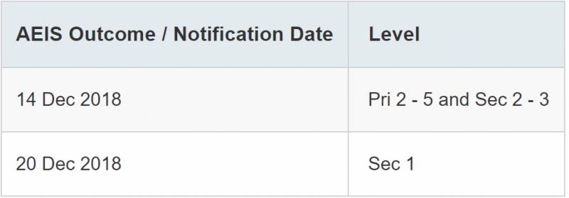 2018年新加坡政府中小学国际学生统一入学考试(Admissions Exercise for International Students,简称AEIS)小学组(P2-P5)和中二中三组别(S2-S3)成绩将于12月14日上午8点30分揭晓,中一组别(S1)成绩公布时间:12月20日。