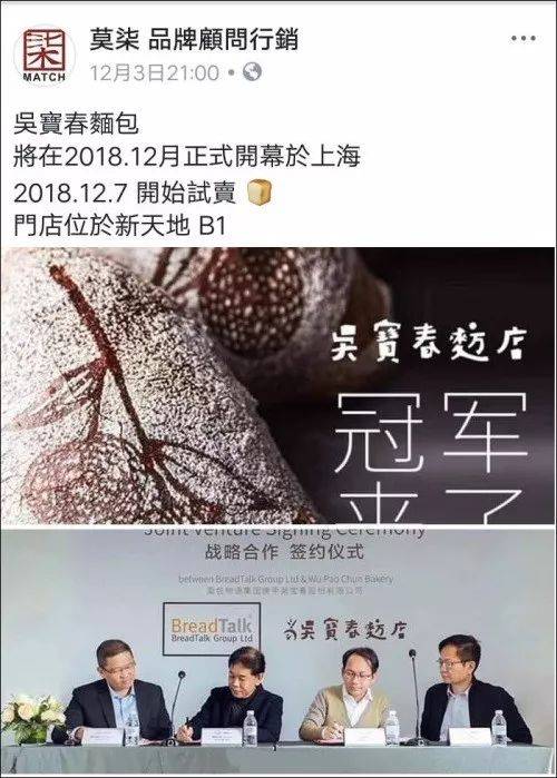 新加坡BreadTalk将吴宝春面包店带到了上海