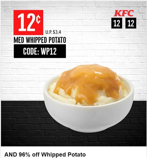 4.KFC Delivery最新优惠券,土豆泥用券仅需一毛二!