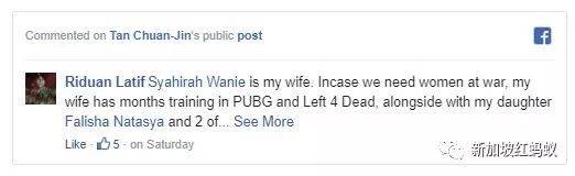 “妻子在网络游戏《绝地求生》(PlayerUnknown's Battlegrounds)和《求生之路》(Left 4 Dead)上训练枪击有数,而女儿也在特别部队完成好几个任务,我看她们做好战斗准备了。事实上,SAR21非常容易操作,若有需要,我也可以教她们使用。”