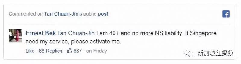年轻的被召去演习,年老的则在网络上表达“爱国心”。新马纷争激起了部分“老兵”的爱国情操,如果大家有仔细去看国会议长陈川仁面簿贴文的留言,一定有留意到有一个贴文引来700多个点赞。