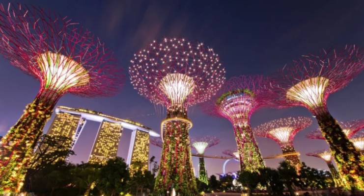 滨海湾花园占地101公顷,拥有三个滨水花园和两个植物保护中心——花园圆顶和云林。