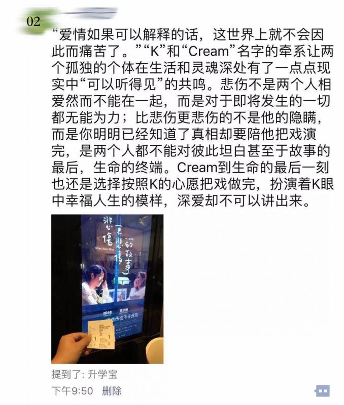 电影正如片名一样悲伤,影院被啜泣吸鼻子的声音充斥。遗憾错过本次观影活动的同学,推荐你也像我们升学宝的同学们一样,走到电影院疏通下泪腺。影片首映日期在12月13日,点击文末连结可跳转至购票网站。