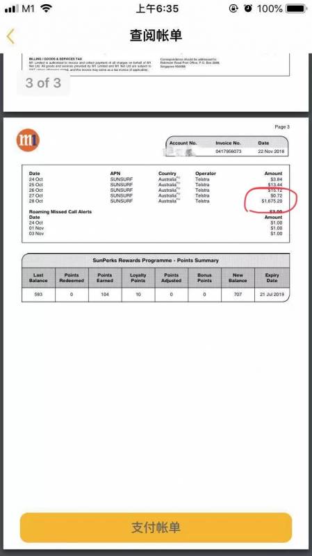 上个月新加坡眼刚报道过,有网友在加拿大上网几分钟,就被M1收了1496新币!这才过了多久,又有网友反馈,在澳洲短短停留5天被M1收了1800多新币的漫游费!