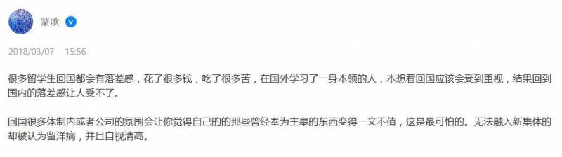 很多留学生回国都会有落差感,花了很多钱,吃了很多苦,在国外学习了一身本领的人,本想着回国应该会受到重视,结果回到国内的落差感让人受不了。
