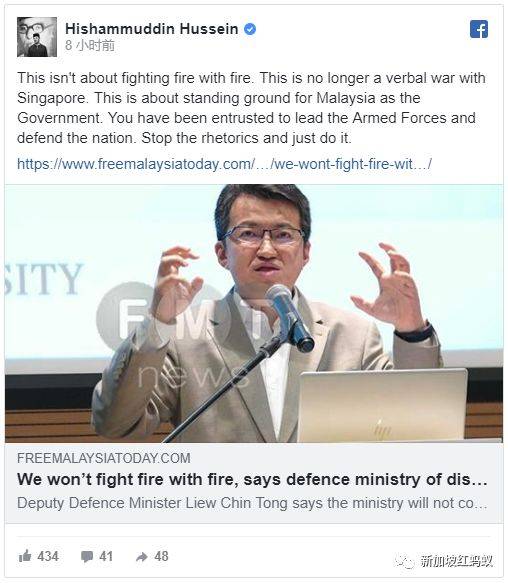 “新加坡部长一个个站出来公开表达立场。我们政府的反应是:等待谈判。来吧,我们在公开提出有力的论据及获舆论支持后要积极发言。力挺马来西亚!”