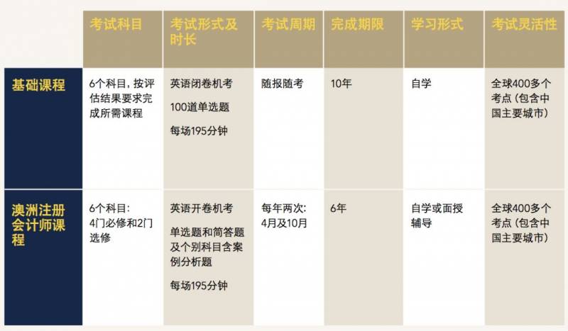正常情况下,需要先学习6个科目的基础课程。通过考试后,可进入澳洲注册会计师课程,同样为6个科目。