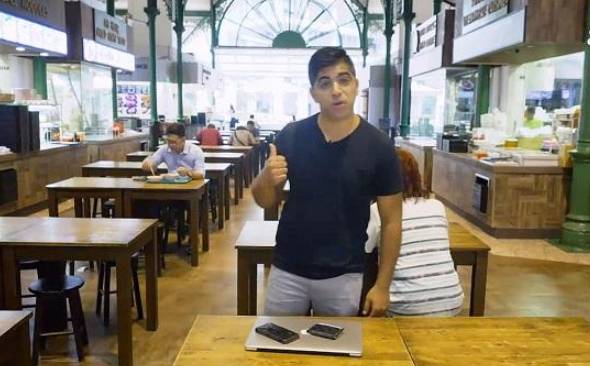 就是跑到小贩中心进行两分钟的测试,先是将贵重物品放置在桌上,再离开座位买食物。