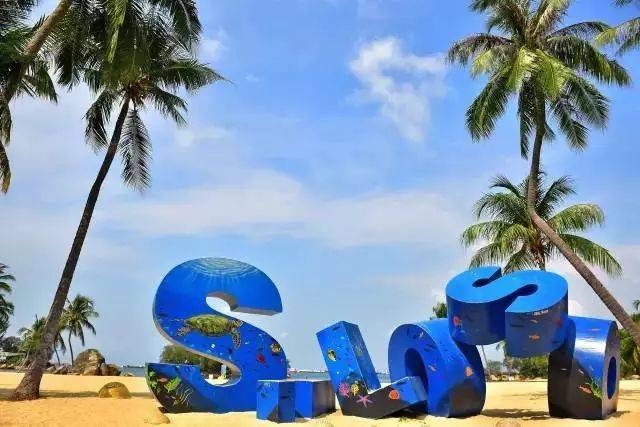 Sentosa意味着“和平安宁”,阳光、沙滩、碧蓝色海水、椰风树影,一起诠释了这个美好的场景。