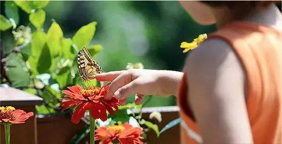 在“贴近蝴蝶”(Butterflies Up-Close)生态饲养室孩子们可以伸手去体会,蝴蝶停靠在手背上轻轻的、像睫毛划过手背的触感,也能近距离观察花园里的精灵如何起舞,和大自然来一次亲密接触,感受下自然界浓浓的生命气息。