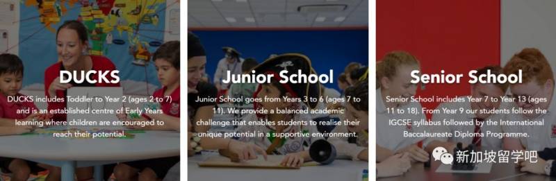 新加坡德威英国国际学校是一所男女兼收,无宗教倾向的学校,在学术上的要求极其严格。学校今年招收从幼儿园到中学八年级的学生,在此期间遵循加强版的英国早期基础阶段课程(EYFS)和英国国家课程标准(ENC),之后衔接国际中学会考课程(IGCSE)。通过审批后,将在中学最后两年提供国际文凭组织的大学预科课程(IB Diploma Programme)。在幼儿园,学生除了每天的中文课,还将在其它的学习活动中接受双语教育。表演艺术和体育也在校园生活中扮演着重要的角色,并将成为新加坡德威国际学校的办学特色之一。