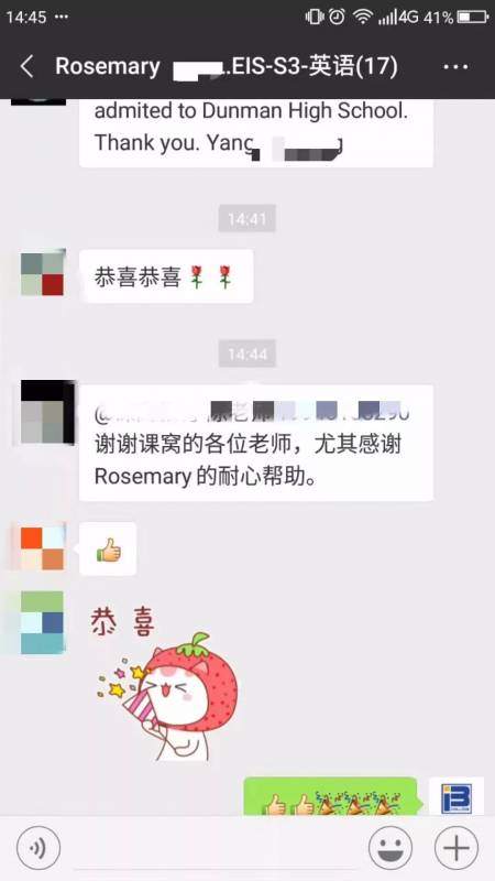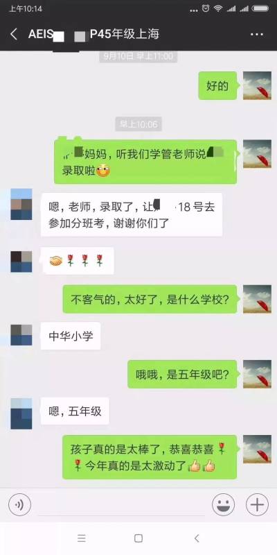 我们的顾问老师于6月开始接触单同学,对单同学的基本情况进行了解后,建议她参加线上一对多的词汇班和作文班,外加几节一对一课程。今天妈妈接到了中华小学的电话,孩子成功被录取了,就读5年级。