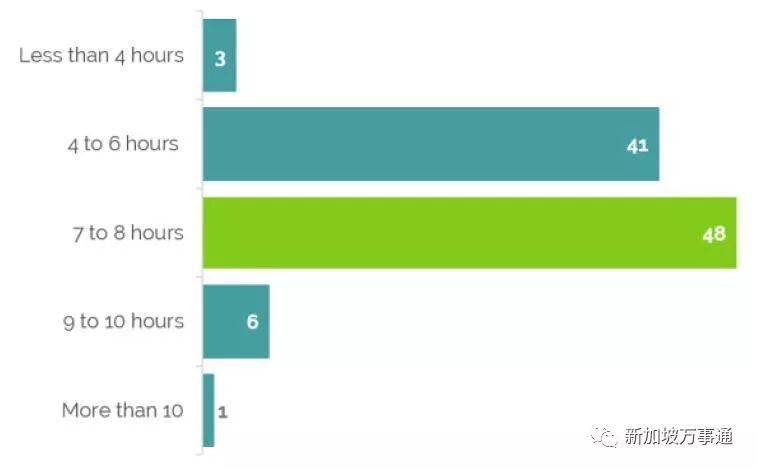 美国疾病控制和预防中心等权威机构证实,成年人每晚应睡满7—8小时。但是在新加坡真正能睡满7—8小时的人却不足一半!