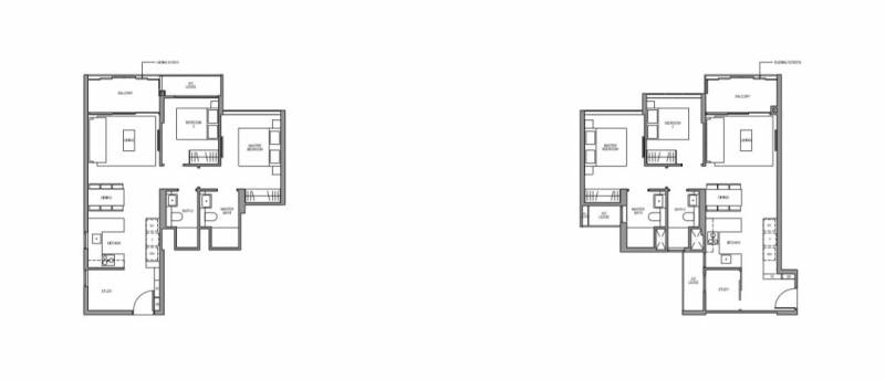 该项目的户型有2房(71平方米)、2房+Study(79-81平方米)、3房(94-123平方米)、4房(161-167平方米)可供选择。