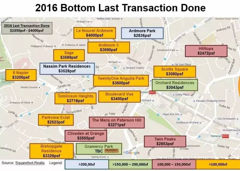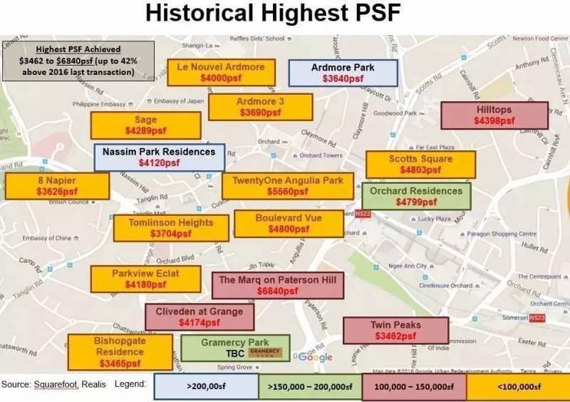 乌节路附近新盘豪宅均价都在3000psf以上,