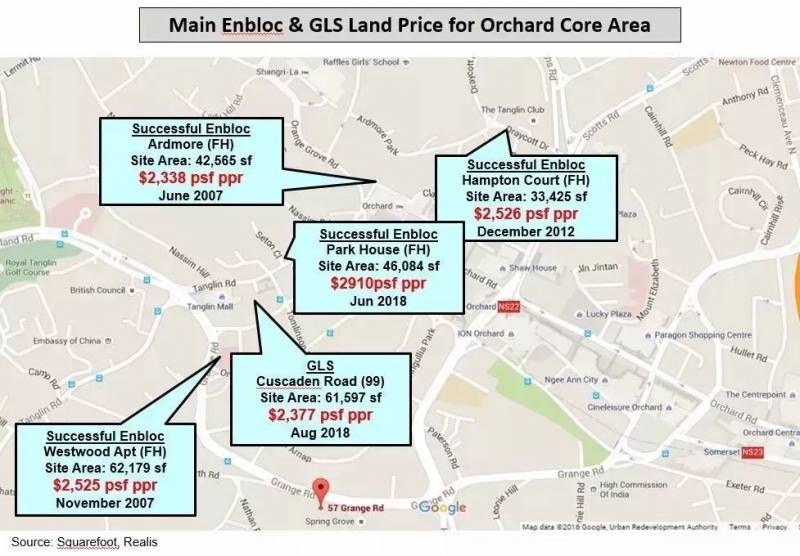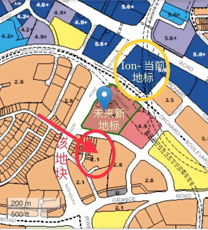 伴随2021年乌节路地铁站的延伸站(Thomson Line)建好,地铁上盖处,政府规划为容积率5.6以上的大型项目, 一个新类似Ion的高层豪宅+购物中心的综合体。这个未来99年地契的新豪宅,售价预计将是新币4000psf以上(至少会高过Ion上面,十年前建的Orchard Residences),猜猜他隔壁的永久产权的土地价值会是多少呢?