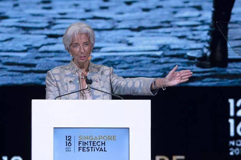 2018年11月,国际货币基金组织(IMF)主席拉加德在新加坡金融科技节上谈到数字货币。(资料图片)