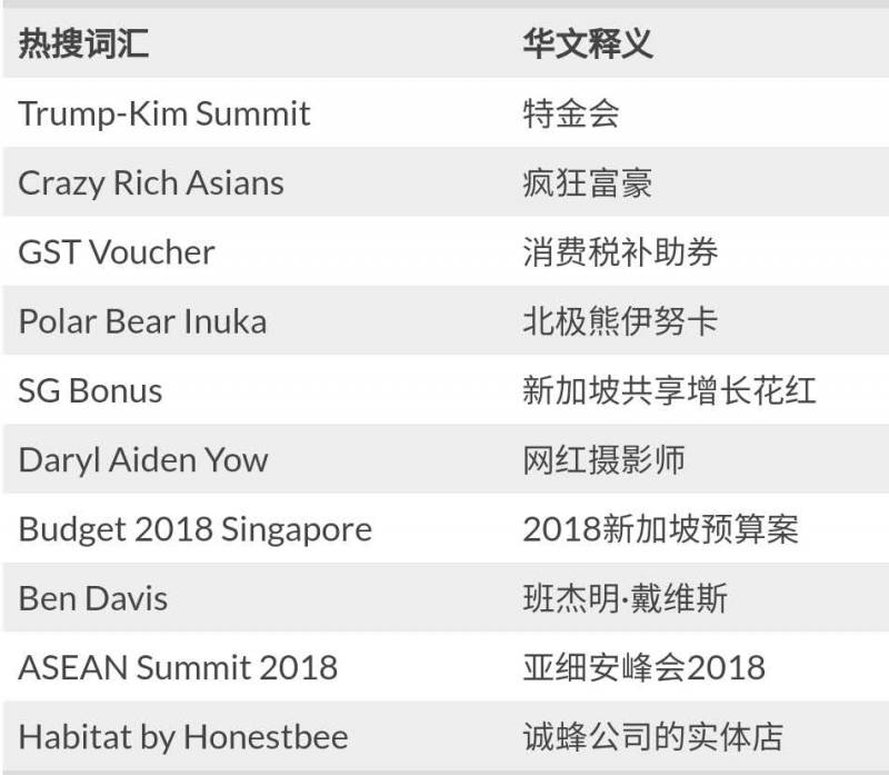 今天搜索引擎巨头谷歌公布了新加坡的热搜榜!