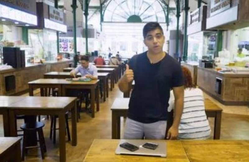 在他离开座位的两分钟内,小贩中心人来人往,不过却没有人试图取走桌上的物品。