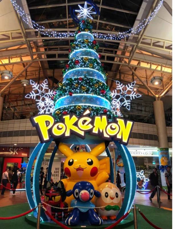 皮卡丘一出现,这棵圣诞树就赢了!!在Jurong Point商场外面,是3D模型,不是卡片。。