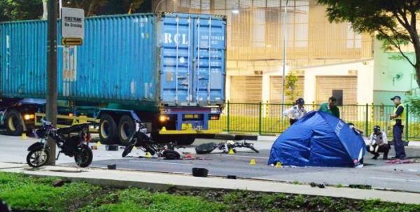 西海岸大路去年发生货柜拖车撞电动脚踏车的死亡车祸,警方事后到场调查