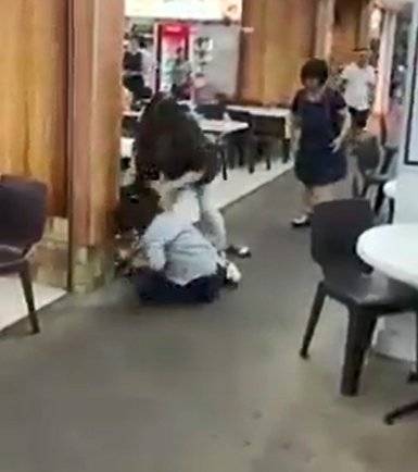 (新加坡15日讯)谈钱伤和气!一家5口在咖啡店讨论过世亲人留下的公积金,岂料却一言不合起口角,当场上演掌掴扭打闹剧。曝光视频显示一女还被打倒在地,惊动警方到场,3女1男遭逮捕,当中包括70岁老妇。