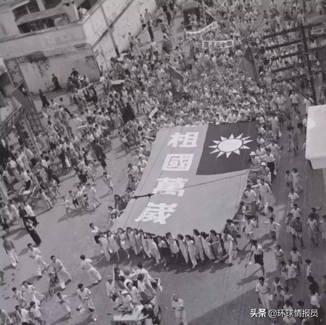 1945年,新加坡华人拿出中国国旗庆祝胜利,显示出了新加坡华人当时的身份认同