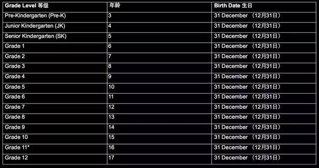 最小年龄的要求及相匹配的就读等级如下,原则上,CIS也允许学生比图表中所匹配的年龄大一岁的情况。
