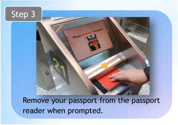 3. 识别成功后,屏幕上会有成功的提示,看不懂无妨,看到第一道门打开就代表读取成功,可拿出护照通过。