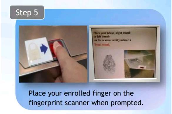 4. 在第二道门前收集指纹,将右手拇指放在指纹感应区上,以中等力度按压。(注意:一定要等第一道门关闭方可操作)