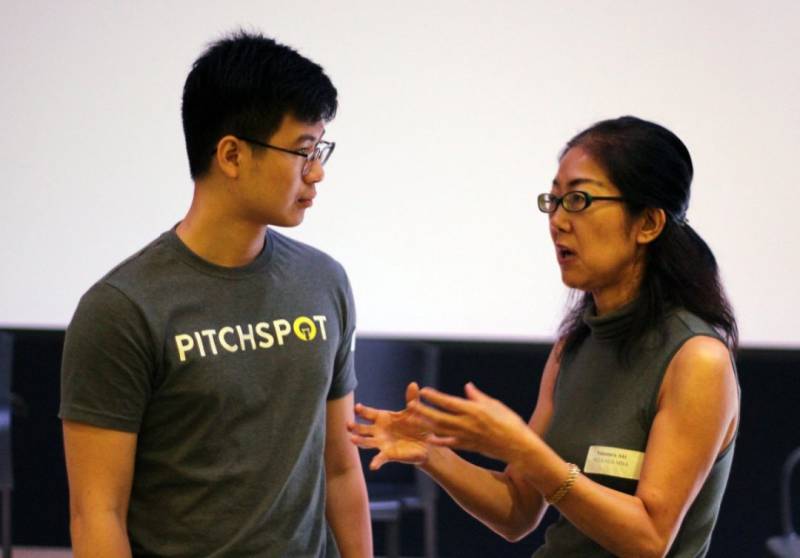 Aki(右)在新加坡电信举办的“时代与创业对话”活动中分享心得。(PITCHSPOT)