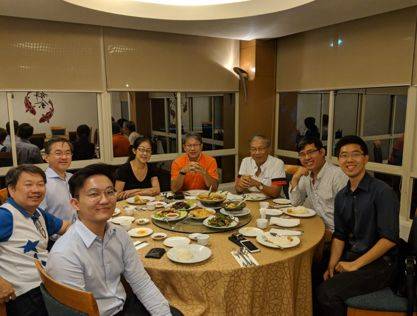 Aki(中)与新加坡国立大学校友企业家村落倡议(NUS Alumni Entrepreneurs Village Initiative)委员会成员。