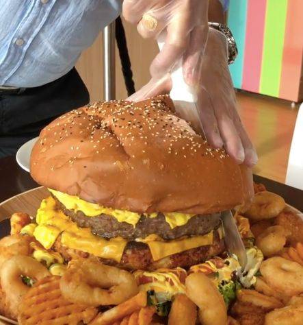这只汉堡净重 4 公斤,直径达 23 厘米,官方说法是足够 4 人享用。但是INS上的反馈是4 个人根本吃!不!完!