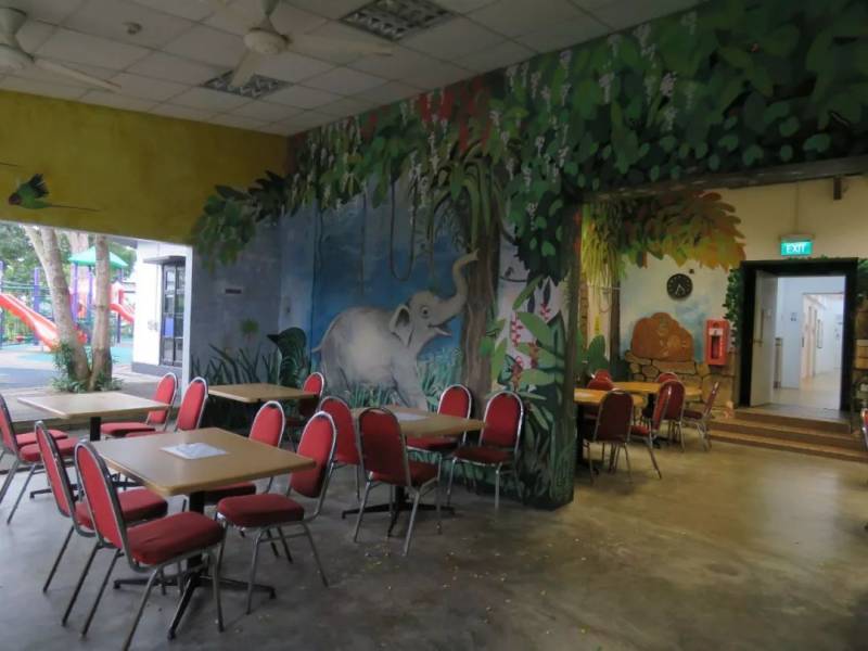 热带雨林风情的学生食堂