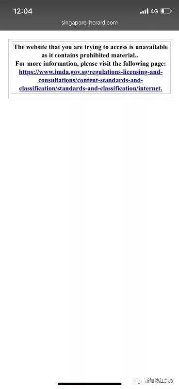 资媒局本月14日向Singapore Herald网站发出通知书,要求对方在当天下午4时前撤下这八遍报道。不过,Singapore Herald拒绝撤下。由于网站编辑没有在期限内撤下有关文章,资媒局指示互联网服务提供商限制公众访问该网站。(似曾相识对吧?)