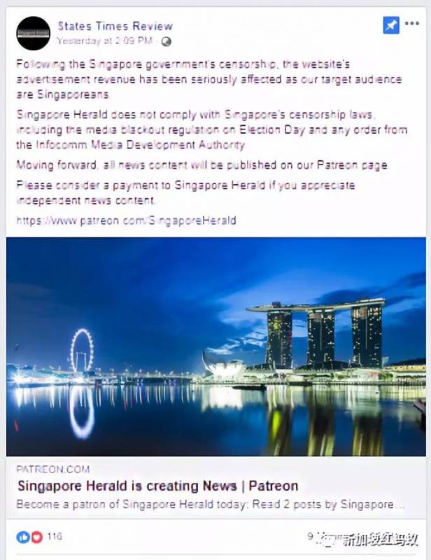 Singapore Herald在Patreon自我介绍说,它们是一家总部位于多伦多的新闻网站,报道新加坡的独立新闻。