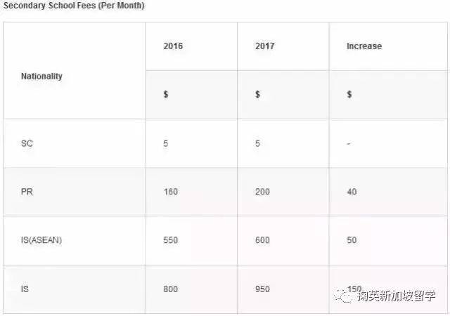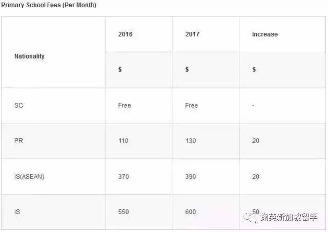 2017年新加坡政府中小学学费详情小学收费标准