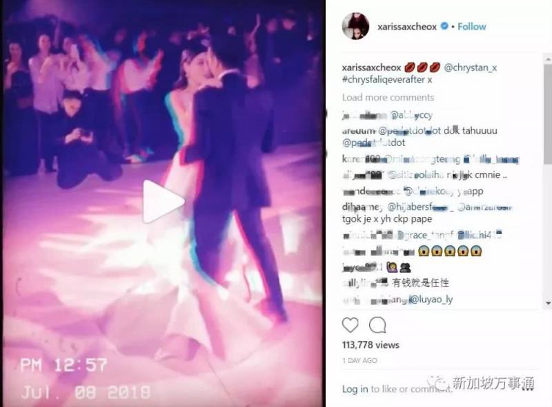 吴建豪的前妻石贞善竟然也去了婚礼现场,还在Instagram中发布了两这对新人在现场乐队的伴奏声中翩翩起舞的视频。