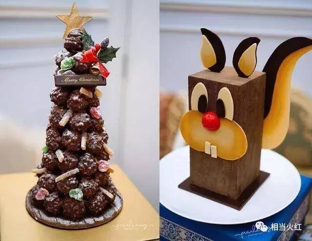 例如圣诞小雪球,香草芝士奶油慕斯,杏仁牛轧糖等等。还有小巧可爱的榛子圣诞树和长方体小松鼠,好看到不用吃进肚子,只要拍照就足够了!